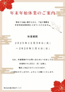 年末年始休業のお知らせ(12/30~1/4)